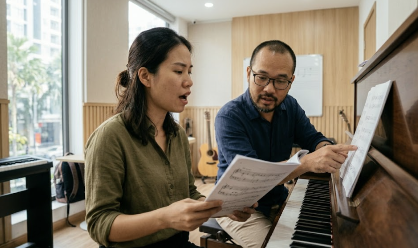 • Thanh nhạc: Tập trung vào giải phóng cơ thể, làm chủ hơi thở và khẩu hình để tiếng hát vang sáng tự nhiên.